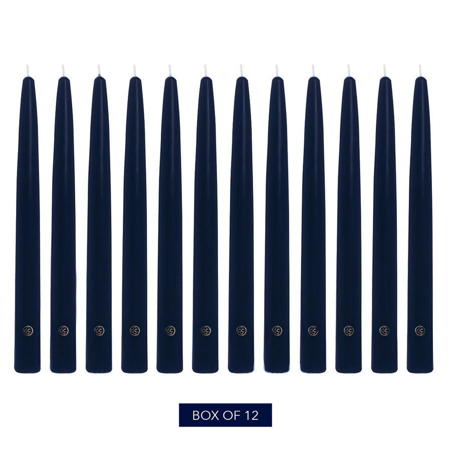 Our refined unscented eight-inch Indigo taper candles are hand dipped, with a burn time of up to eight hours each.